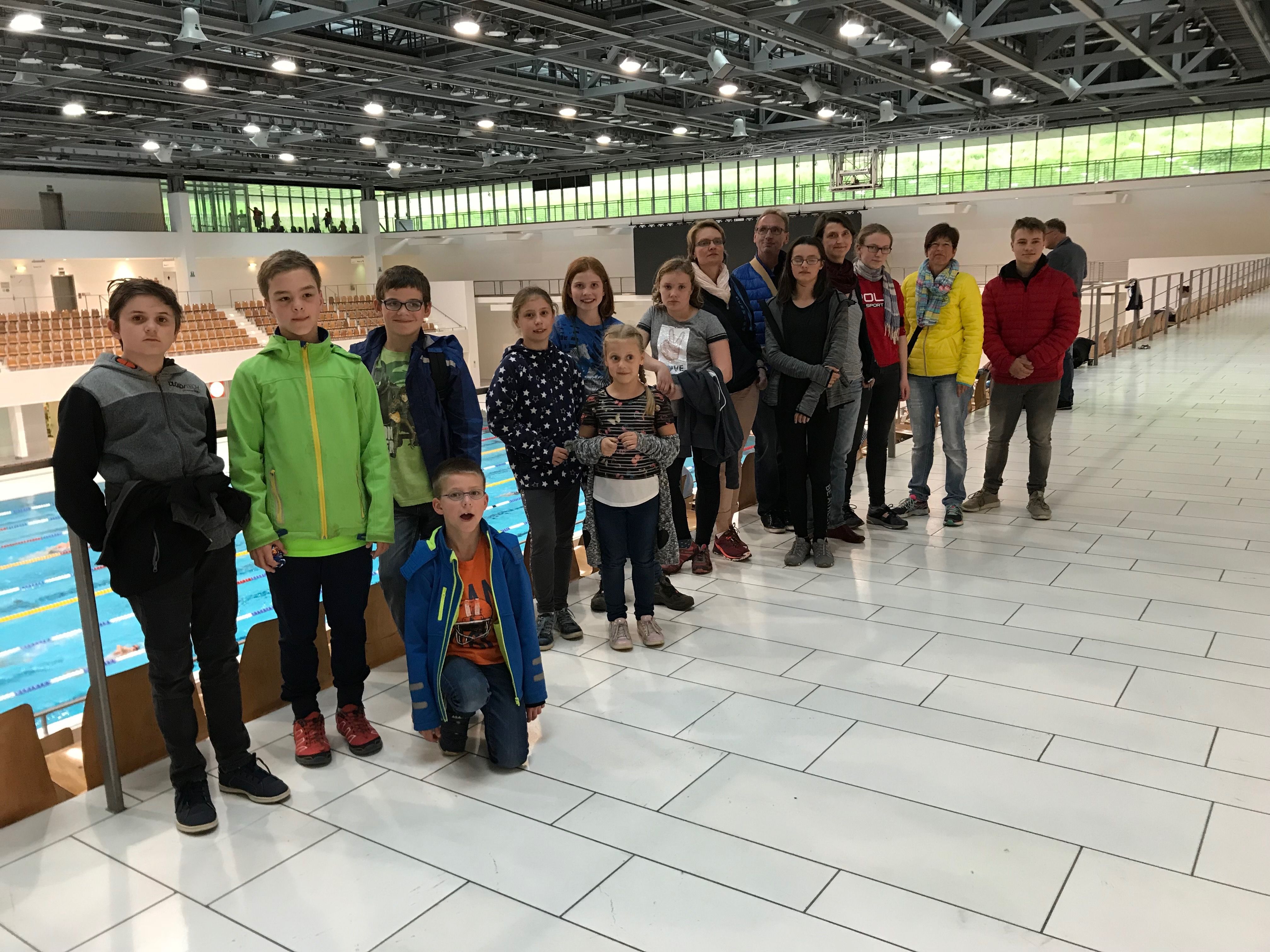 Nachdem die Zimmer aufgeteilt und in Beschlag genommen wurden, machten sich alle auf den Weg in den Stadtbezirk Prenzlauer Berg. Dort besuchten wir das Zeiss-Großplanetarium. In Europas modernstem Wissenschaftstheater werden in faszinierenden 360-Grad-Fulldome-Programmen die Geheimnisse des Universums erkundet. Alle hörten gespannt dem Vortrag Incoming!Kosmische Kollisionen zu und waren beeindruckt über die Bilder, wie Asteroiden und Reste von Kometen den Weg des Lebens auf der Erde beeinflussten und die Welt so formten, wie wir sie heute kennen. Da wir in der Nähe der Lanzberger Allee waren, bot sich als Schwimmer ein Abstecher in die Schwimm- und Sprunghalle im Europasportpark an, wo viele nationale und internationale Wettkämpfe ausgetragen werden.