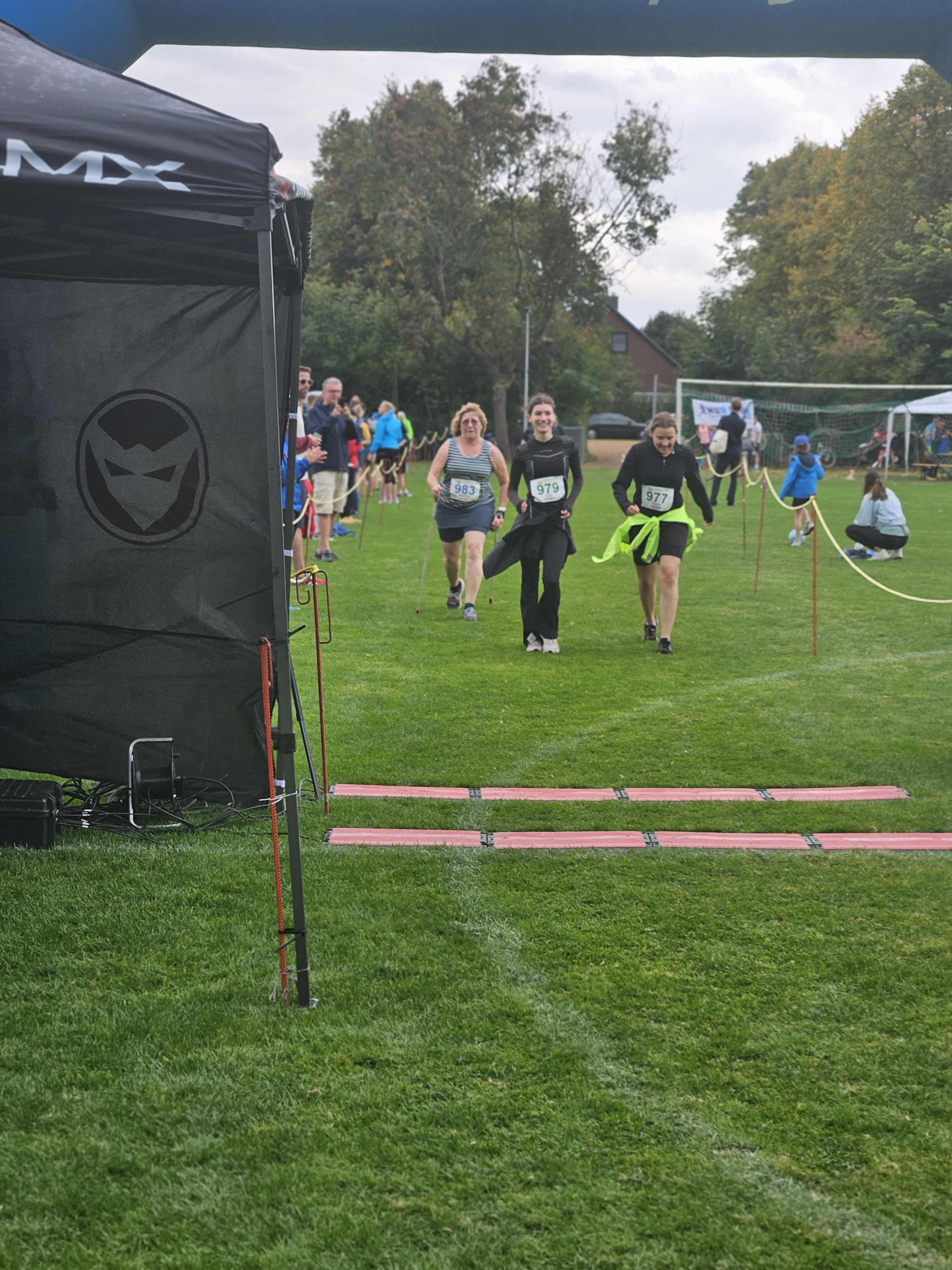 Ana Paula und Sandra nahmen die 5,2 Kilometer Laufstrecke in Angriff. Sandra hatte knapp die Nase vorne und beide konnten dann im Zieleinlauf auf die drei Walker aus unserem Team warten.