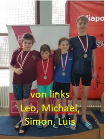 Die Bruststaffel lief bei allen Jungs dann nicht so rund. Bei der am ersten Tag abschließenden Rückenstaffel ging es flott zur Sache und alle Jungs verbesserten ihre Zeiten deutlich. Am Sonntag standen die Schmetterling- und die Lagenstaffel auf dem Programm. Bei beiden Staffeln verfehlten sie die Jungs ihre Zeiten gegenüber dem Landesentscheid nur knapp.