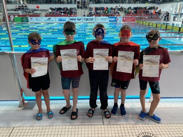In der Schwimmoper Wuppertal traten die Misburger Leo Andrzheeskii, Michael Yastrebov und Joshua Gongala zusammen mit Simon Dannenberg und Kyrylo Sokyrko gegen die bundesweit elf besten Teams der DJugend an.