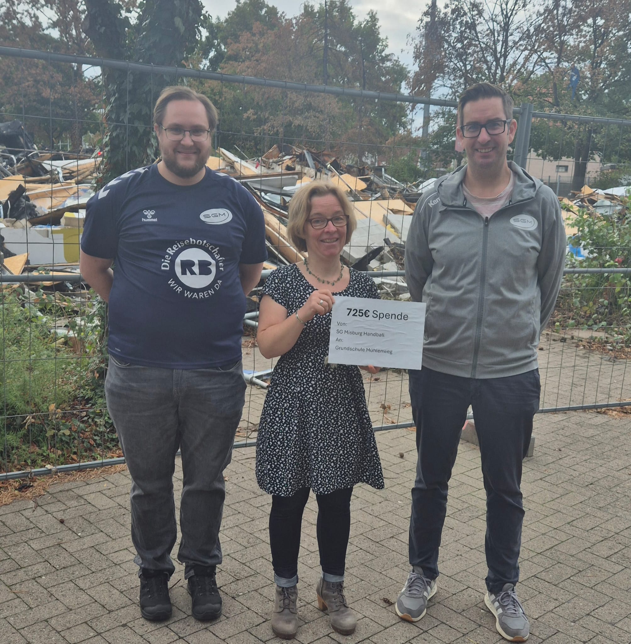 Ein weiterer bedeutender Schritt zur Unterstützung wurde gemacht, als der Abteilungsleiter der SG Misburg, Dustin Seidel, gemeinsam mit dem Organisator des Turniers Florian Müller, der Schulleiterin einen Spende von 725€ übergab. Diese Geste symbolisiert nicht nur die finanzielle Unterstützung für die betroffenen Schüler:innen, sondern auch die enge Verbundenheit zwischen der SG Misburg und der Grundschule Mühlenweg.