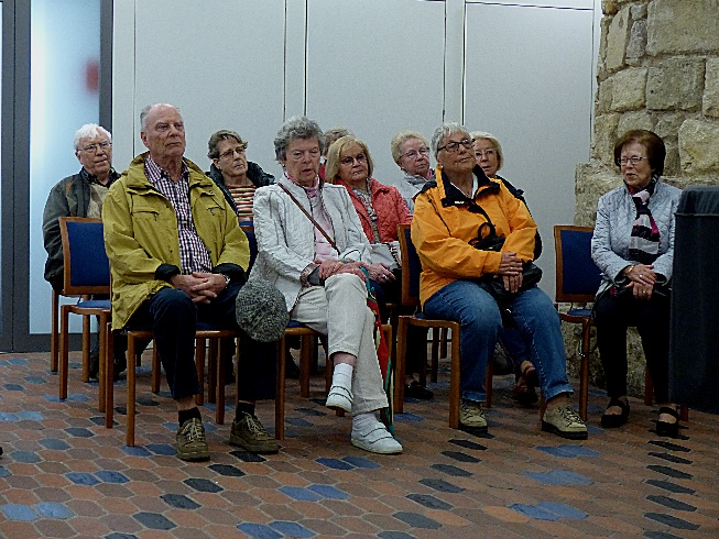 22 Mitglieder und 3 Gäste starteten um 14.00 Uhr unter Führung von Frau Enke und begaben sich zunächst in den Untergrund. Hier entstand im Zuge des Wiederaufbaus der im 2. Weltkrieg zerstörten Kirche nach den Plänen des hannoverschen Architekten Oesterlen anstelle der Grüfte u.a der Bödekersaal. Besonders sehenswert sind die freigelegten Grundmauern und Säulenfundamente die wie riesige Elefantenfüße aussehen. Sie wurden im 14. Jahrhundert aus Werksteinen der romanischen Vorgängerkirche gemauert. Der Raum trägt den Namen des wohltätigen Marktkirchenpastors Hermann Wilhelm Bödeker. Der Saal wird von der Gemeinde für Vorträge, Chorproben und andere kirchliche Aktivitäten genutzt.
