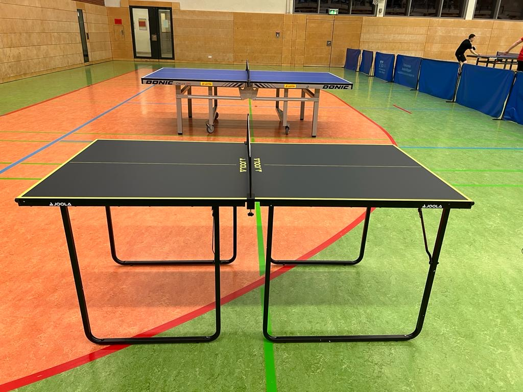 Pünktlich zum Trainingsstart im neuen Jahr konnte direkt eine kleine Neuanschaffung aufgebaut werden. Dank einer Spende besitzt die Abteilung nun einen Mini Tischtennistisch. Er hat gerade mal die Maße von 1,68 m x 0,80 m, also ca 1/3 des normalen Tisches und ist somit ungefähr so groß wie ein ausgezogener Esstisch. Tobias und Finn haben den „Fun –Tisch“ auch gleich getestet, waren begeistert und hatten ihren Spaß. Damit hat der Tisch auf jeden Fall Daseinsberechtigung und wird sicher auch zukünftig häufig und gern bespielt werden.