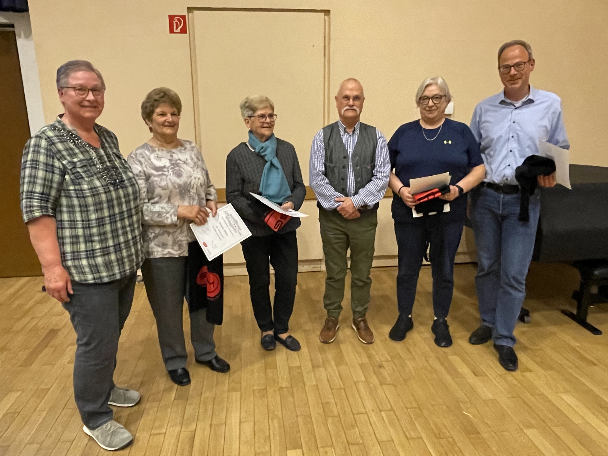 Viele langjährigen Mitgliedern konnten mit der goldenen bzw. silbernen Ehrennadel und Urkunde sowie einem Gutschein ortsansässiger Unternehmen geehrt werden. In diesem Jahr standen auch wieder Ehrungen für sportlichen Leistungen an. Die Ehrennadel in Silber erhielten Leo Andrzheevskii, Joshua Gongala , Michael Yastrebov als Landesmeister der DMSJ in der Gesamtzeit von 25: 50,03 min sowie Maksym Trokhanchuck für den 2. Platz Norddeutsche Meisterschaften mit der 4x100 m Freistil Staffel in 3:38,17 min.